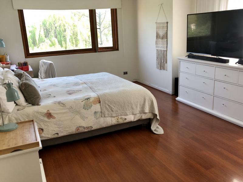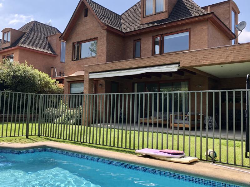 Espectacular casa en condominio. Seis dormitorios, dos de ellos en suite, salita, escritorio, servicios. Cocina con comedor de diario, quincho, gran terraza, luminoso jardín poniente con piscina. A pasos de colegios, locomoción y servicios. Seguridad, gastos comunes incluidos en el precio. Imperdible!