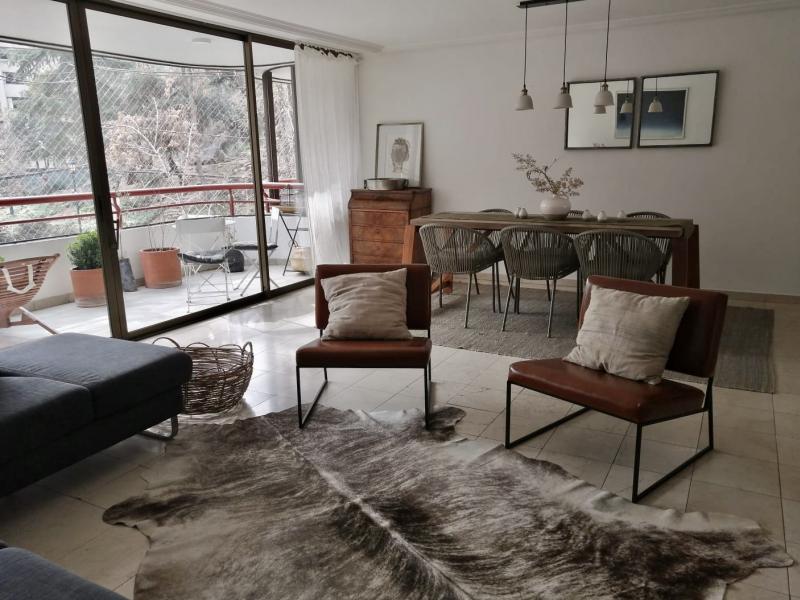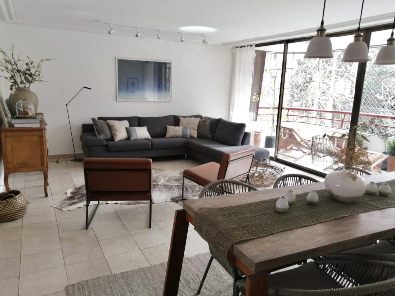 Noble y luminoso departamento de finas terminaciones. Edificio muy central en calle silenciosa frente a plaza, a pasos de todo. Recibos separados en mármol, terraza en el living con linda vista norte, despejada y asegurada. Cocina con comedor de diario, servicios amplios, baño de visitas. En sector privado, gran suite con terraza y walk-in closet y dos dormitorios al oriente, que comparten un baño. Piso medio,2 estacionamientos frente a bodega, GGCC: $270.000. Realmente imperdible!