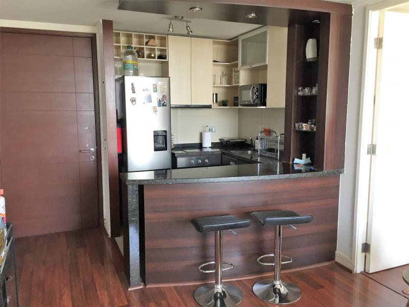DISPONIBLE MEDIADOS DE MARZO. SE SOLICITA MES Y MEDIO DE GARANTÍA. CONTRATO EN UF. Estupendo departamento de un dormitorio en suite, cocina americana, living, amplia terraza, vista nororiente. El condominio cuenta con muy buenas instalaciones, tales como quincho, piscina temperada y exterior, gimnasio, lavandería, sala de reuniones y estacionamiento de visitas. Un estacionamiento y bodega de 1 x 3 m. IMPERDIBLE !!