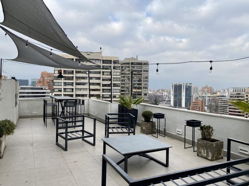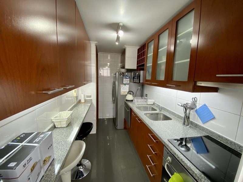 Impecable y luminoso departamento. Vista! Amoblado y equipado completamente. Cuenta con dos dormitorios, dos baños, living comedor con salida a terraza, cocina y logia. Un estacionamiento, bodega. El edificio cuenta con lavandería, piscina, quinchos, sala pool, sala multiuso, sala para gimnasia, bicicletero, áreas verdes. IMPERDIBLE!!