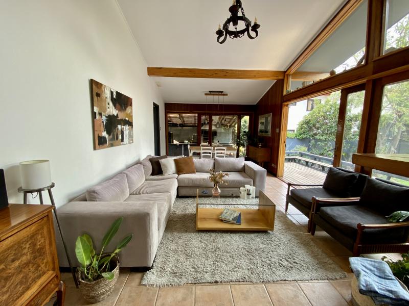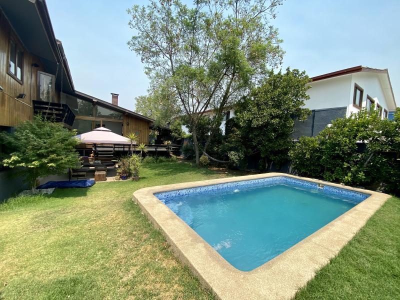 Excelente casa ubicada en tranquila calle, con entretenida arquitectura en desniveles. Remodelada, luminosa y amplia. Nororiente. Cuenta el hall de distribución, living comedor con salida a terraza y a espectacular quincho. Gran suite principal más otros tres dormitorios, tres baños, espaciosa cocina y servicio completo. Sala de estar y zócalo. Piscina con panel solar, terraza volada con vista al jardín. IMPERDIBLE!