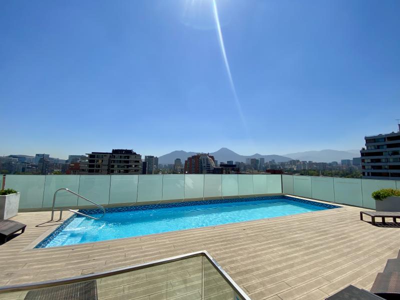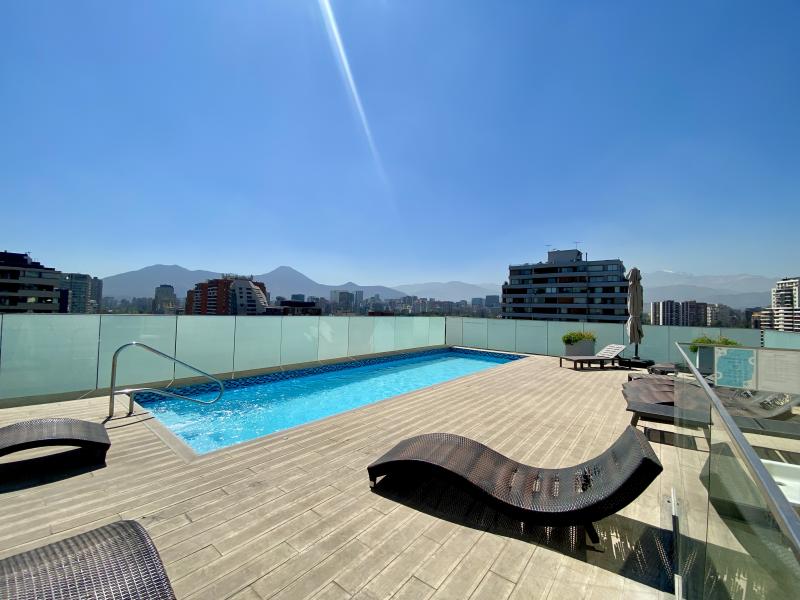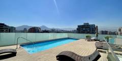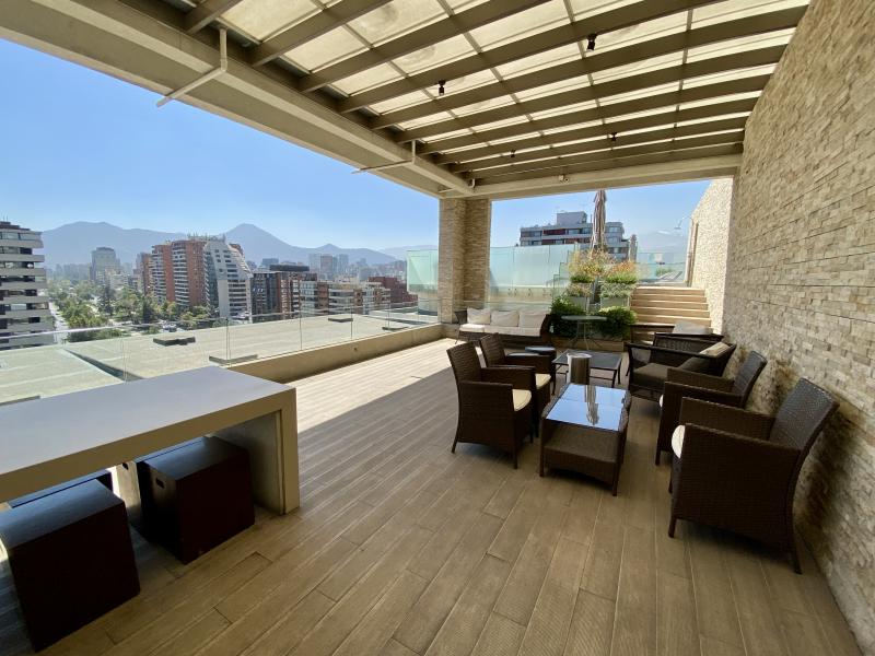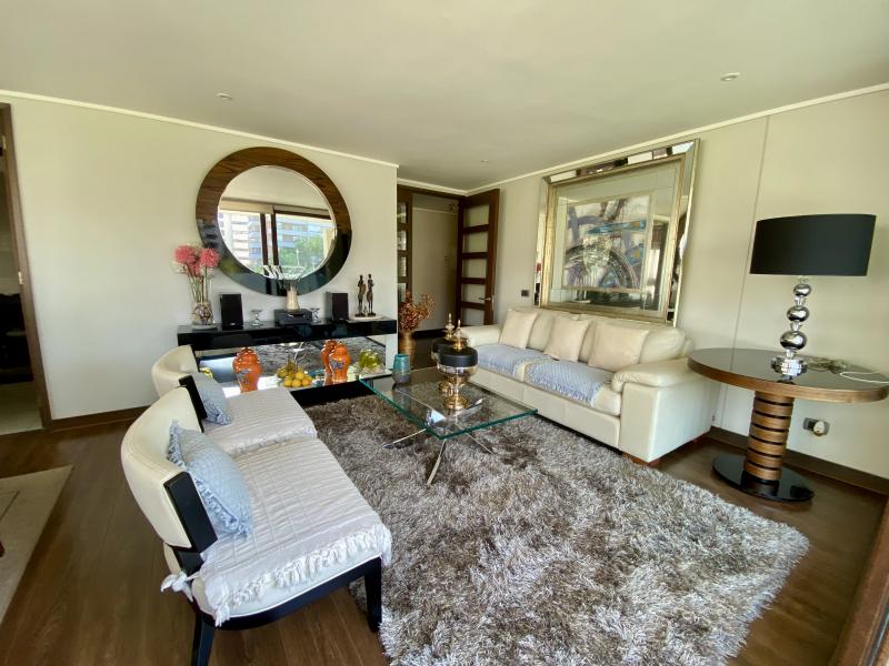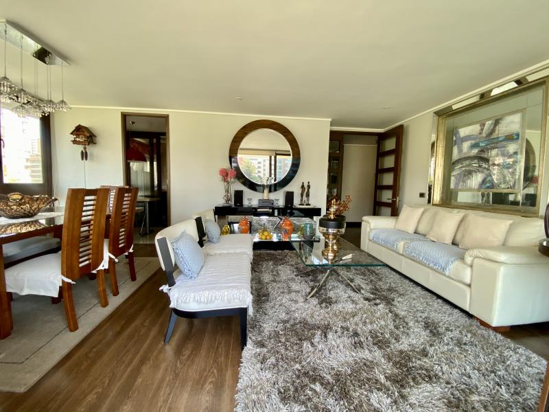 Estupendo departamento, IMPECABLE! Excelente ubicación, cercano a Metro, Colegio Verbo Divino, Villa María, entre otros. Cuenta con tres dormitorios y tres baños, living comedor con salida a terraza, cocina, logia. Bodega, estacionamiento. Áreas verdes, sala multiuso, gimnasio. Piscina y quincho en la azotea. Termopanel. GGCC: $ 280.000. IMPERDIBLE!