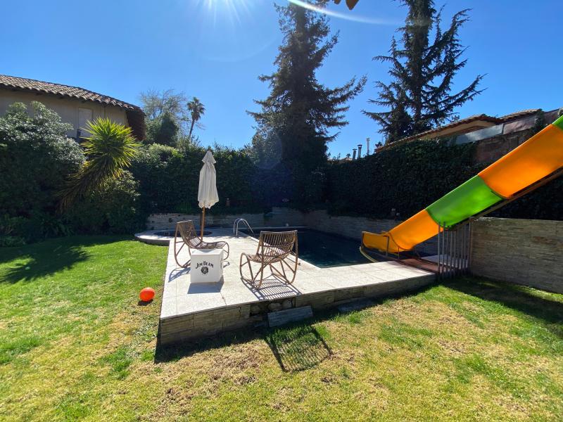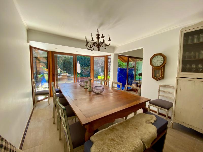 Familiar y amplia!! Nororiente. Ubicada en Huinganal plano a pasos de Colegio Mayflower. Buena conectividad!! Gran quincho y piscina, termopanel. Cuenta en el primer piso con la suite principal, tres dormitorios y dos baños. Espaciosa cocina, living comedor separados, baño de visitas, estar. En el segundo piso hay otro dormitorio más otro baño.Estacionamiento para varios autos. Bodegas. IMPERDIBLE!
