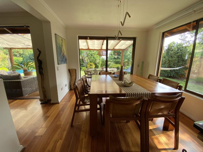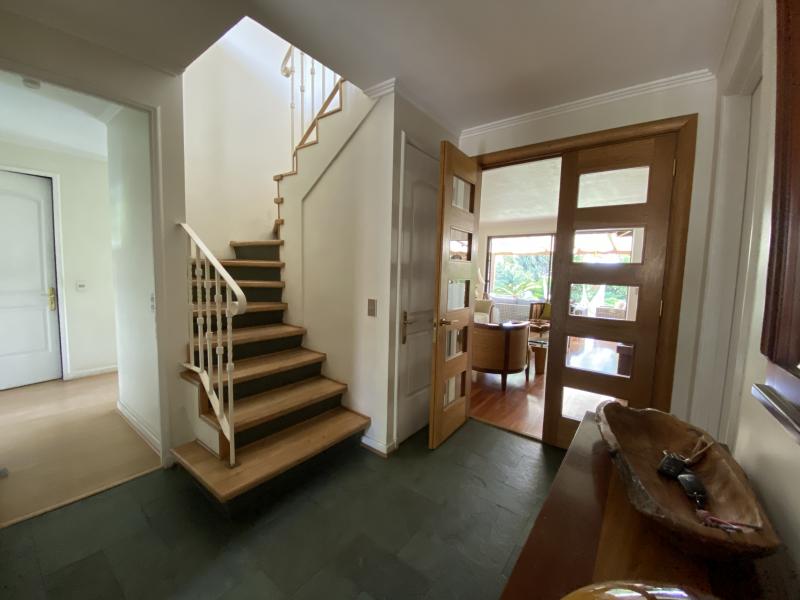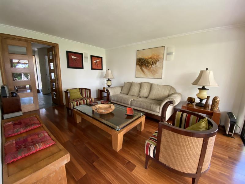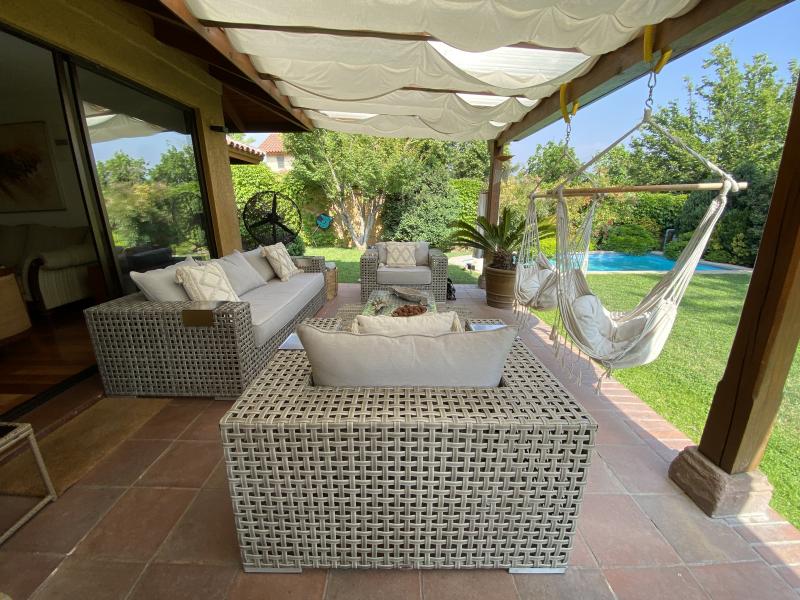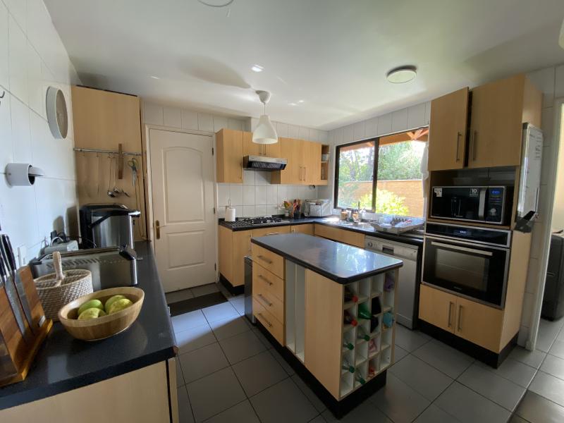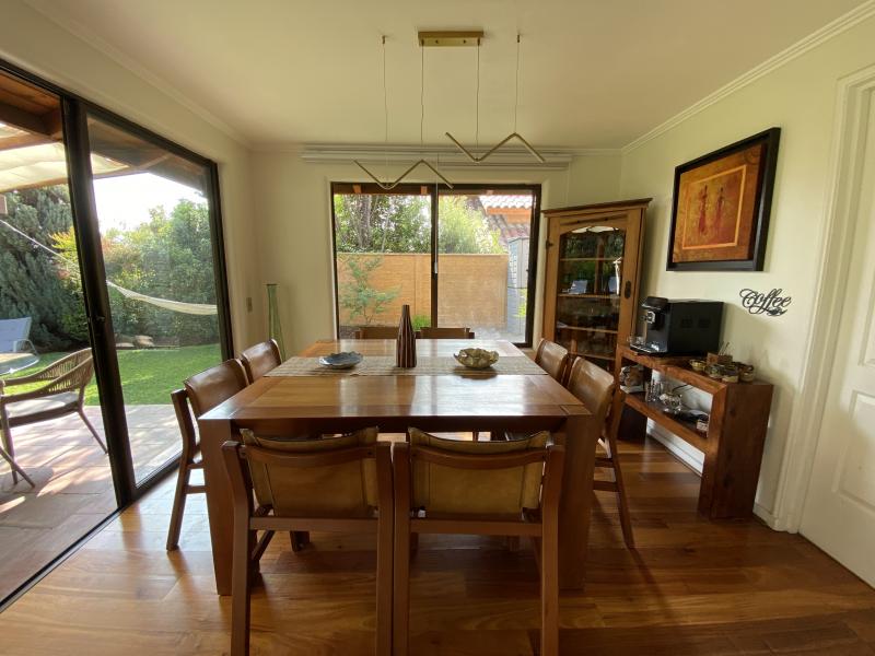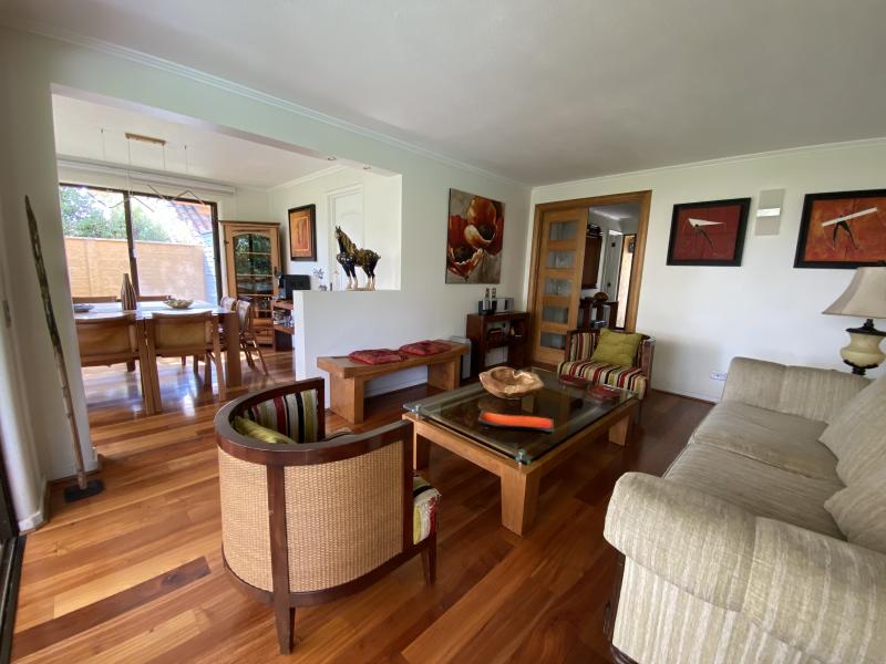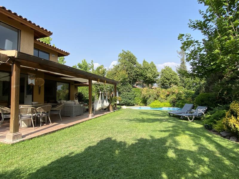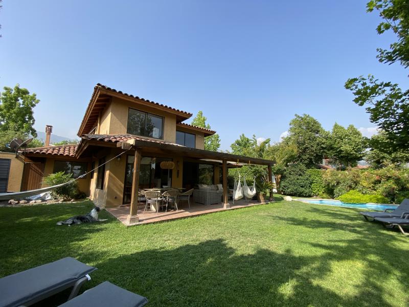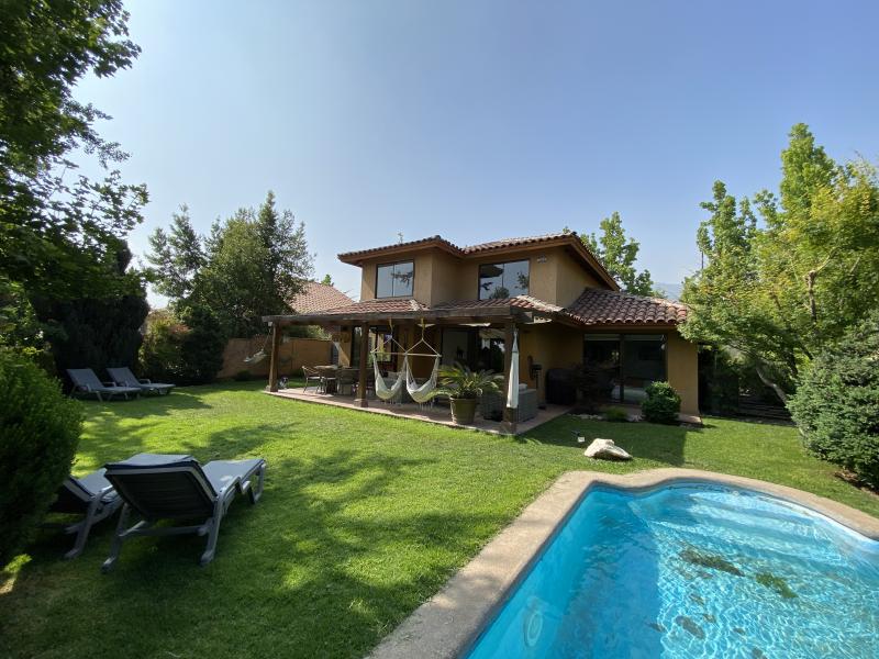 Estupenda casa en Valle La Dehesa, en barrio muy tranquilo, con excelente acceso a Los Trapenses y Huinganal, y a pasos de centro comercial Patio Andino. Precioso jardín con piscina, amplio patio. Cuenta en el primer piso con la suite principal, escritorio o dormitorio, living comedor separados, cocina con isla, servicio completo, baño de visitas. En el segundo piso se encuentra la sala de estar, otra suite, más dos dormitorios que comparten un baño. Segundo piso ampliable. IMPERDIBLE !!!