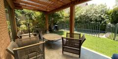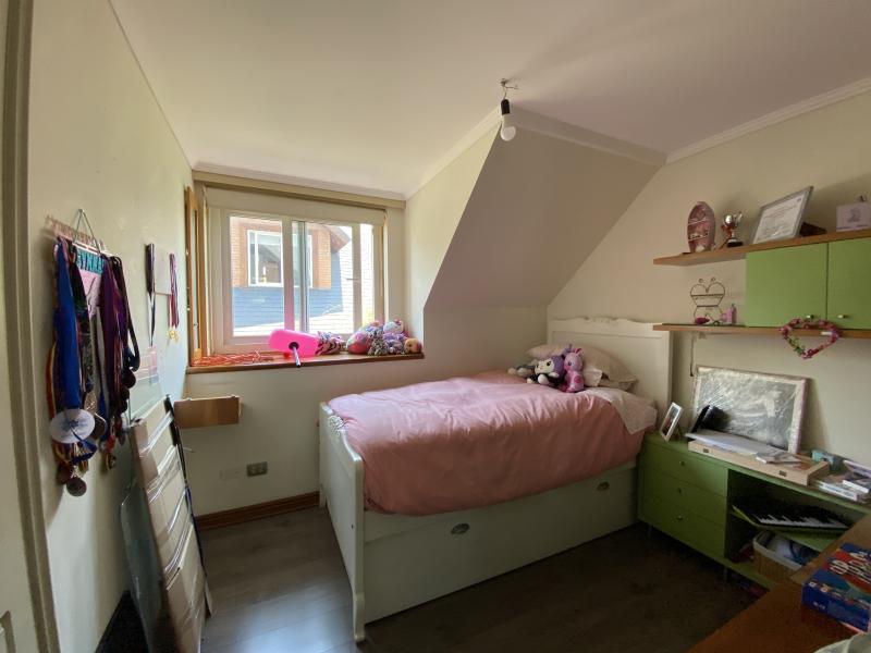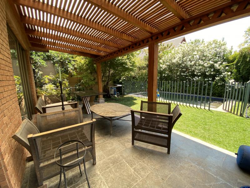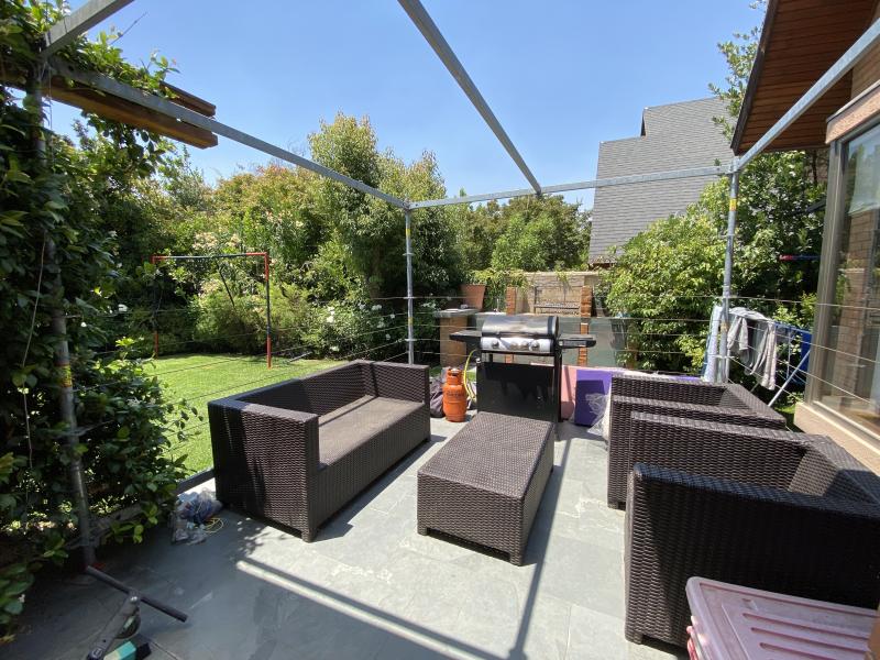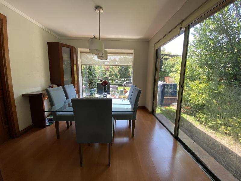 Oriente, dentro de seguro condominio cercano a colegios de sector Los Trapenses. Piscina, lindo jardín y barbecue! Cuenta en el primer piso con la suite principal, escritorio, living comedor separados, cocina, servicio completo, baño de visitas. Amplia sala de estar, otra suite más tres dormitorios y otro baño en el segundo piso. No perimetral, conserjería 24/7,Contribuciones $900.000 GGCC $250.000. IMPERDIBLE!