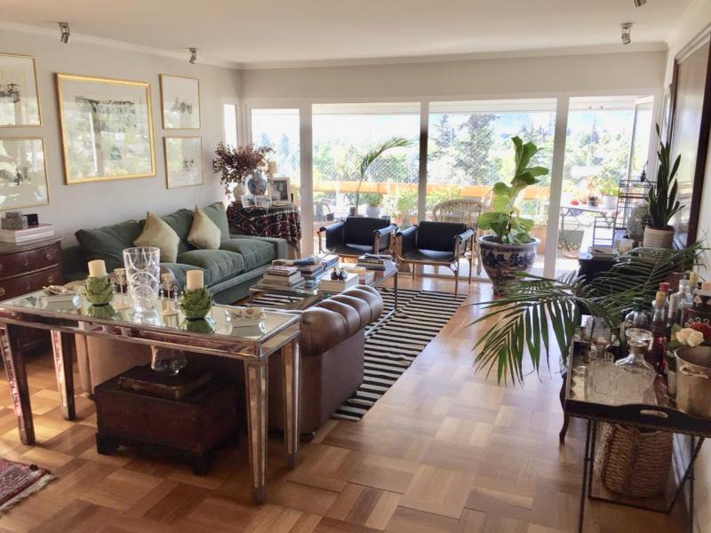 DISPONIBLE ABRIL. Espectacular! Amplio departamento remodelado en el mejor sector de Vitacura, vista despejada norponiente, termopaneles, parquet. Tres dormitorios más servicios, gran terraza con cierre de vidrio. Piso 8, gastos comunes promedio $260.000 con calefacción incluida. Gran bodega, un estacionamiento. Noble, precioso, imperdible!
