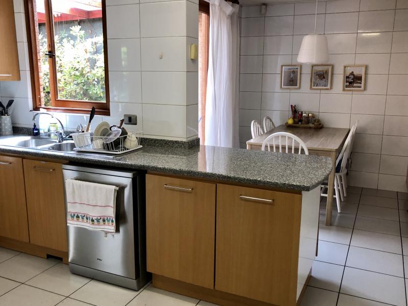 Espectacular casa en condominio. Seis dormitorios, dos de ellos en suite, salita, escritorio, servicios. Cocina con comedor de diario, quincho, gran terraza, luminoso jardín poniente con piscina. A pasos de colegios, locomoción y servicios. Seguridad, gastos comunes incluidos en el precio. Imperdible!
