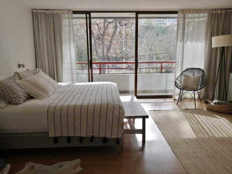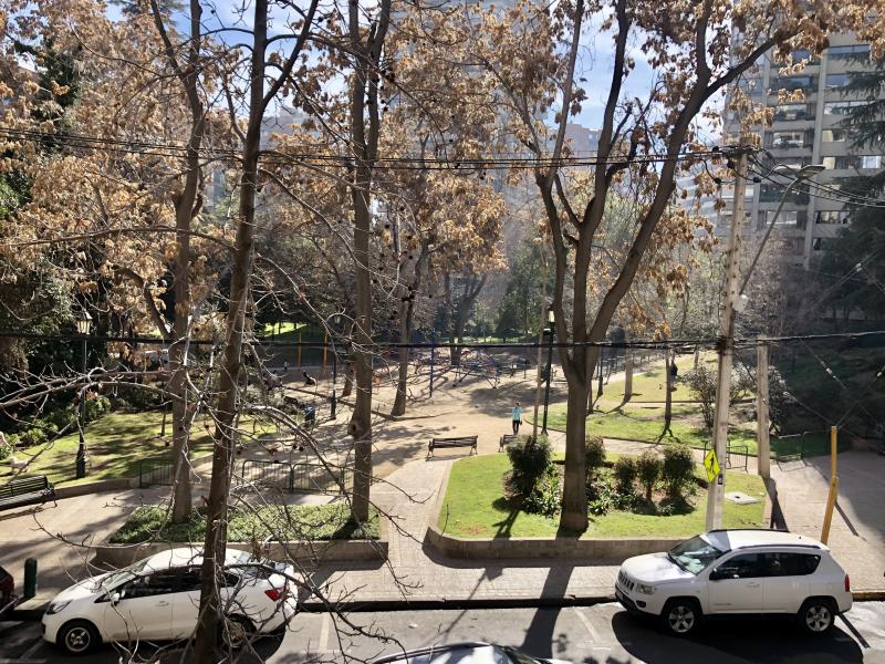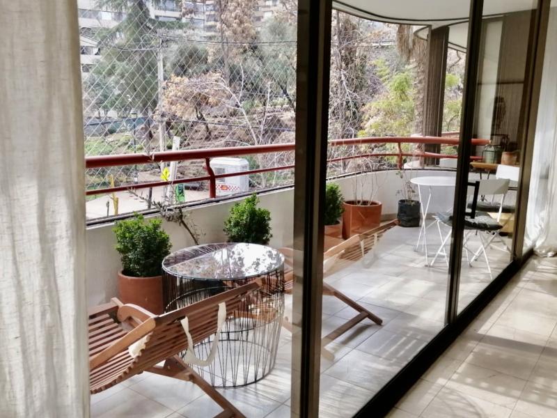Noble y luminoso departamento de finas terminaciones. Edificio muy central en calle silenciosa frente a plaza, a pasos de todo. Recibos separados en mármol, terraza en el living con linda vista norte, despejada y asegurada. Cocina con comedor de diario, servicios amplios, baño de visitas. En sector privado, gran suite con terraza y walk-in closet y dos dormitorios al oriente, que comparten un baño. Piso medio,2 estacionamientos frente a bodega, GGCC: $270.000. Realmente imperdible!