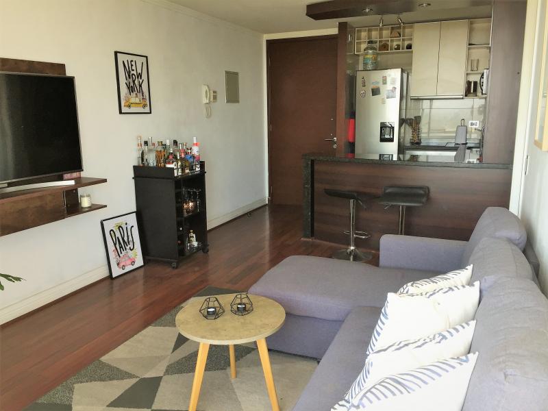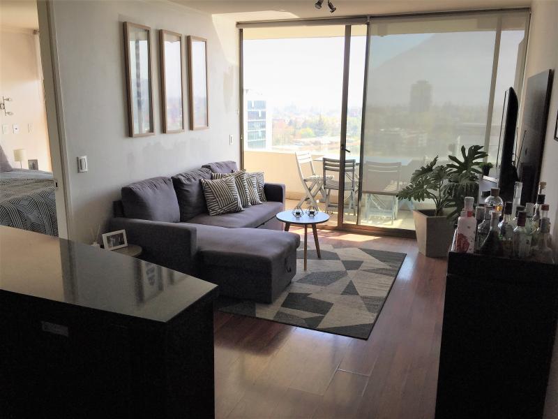 DISPONIBLE MEDIADOS DE MARZO. SE SOLICITA MES Y MEDIO DE GARANTÍA. CONTRATO EN UF. Estupendo departamento de un dormitorio en suite, cocina americana, living, amplia terraza, vista nororiente. El condominio cuenta con muy buenas instalaciones, tales como quincho, piscina temperada y exterior, gimnasio, lavandería, sala de reuniones y estacionamiento de visitas. Un estacionamiento y bodega de 1 x 3 m. IMPERDIBLE !!