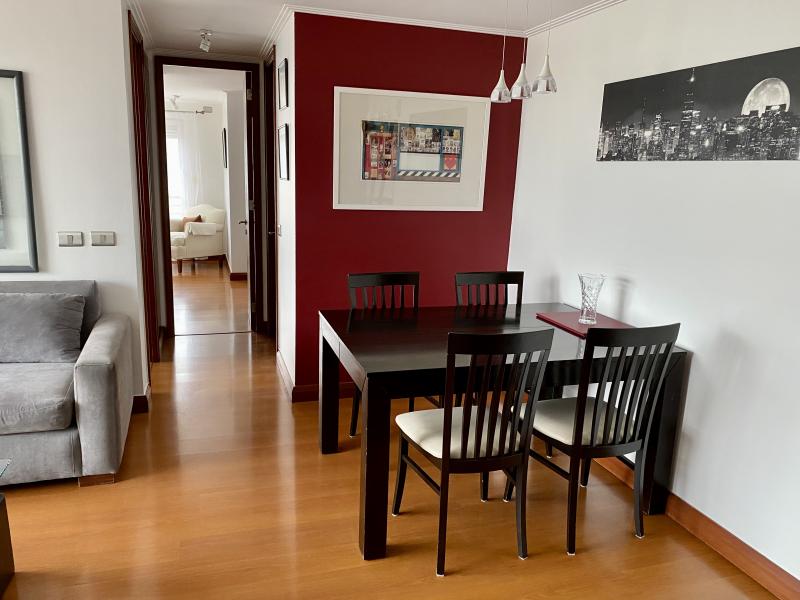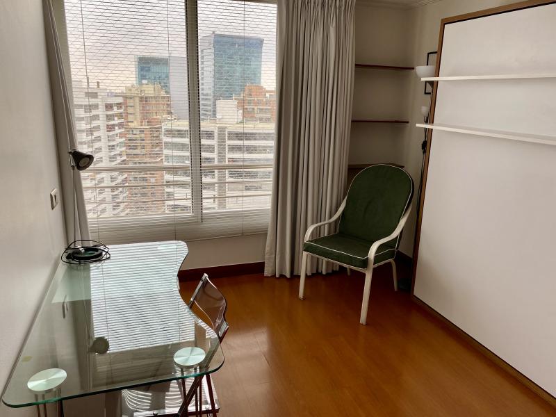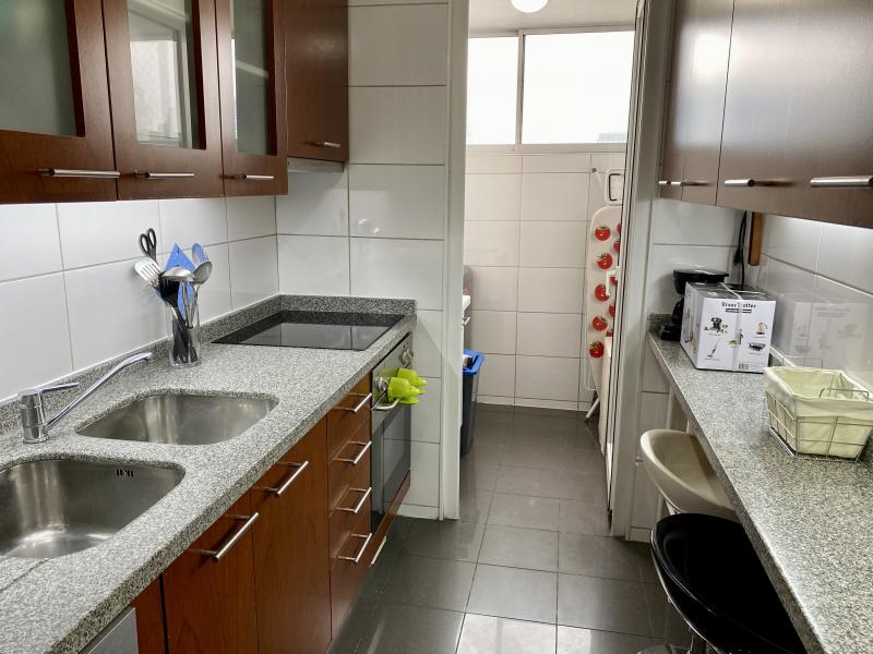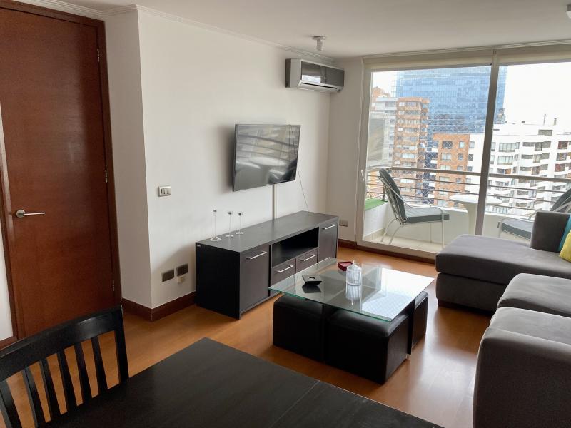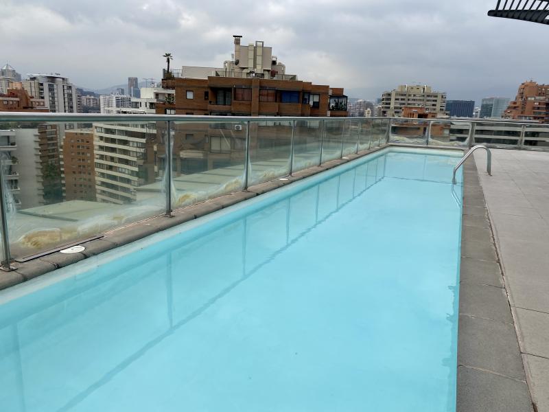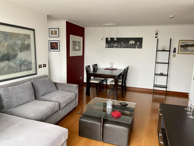 Impecable y luminoso departamento. Vista! Amoblado y equipado completamente. Cuenta con dos dormitorios, dos baños, living comedor con salida a terraza, cocina y logia. Un estacionamiento, bodega. El edificio cuenta con lavandería, piscina, quinchos, sala pool, sala multiuso, sala para gimnasia, bicicletero, áreas verdes. IMPERDIBLE!!