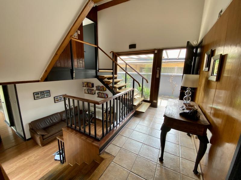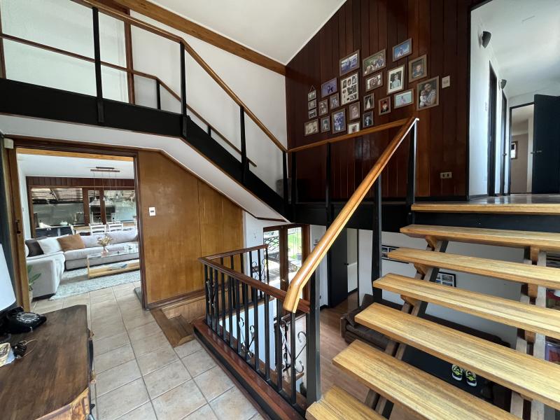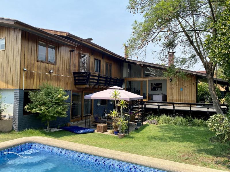 Excelente casa ubicada en tranquila calle, con entretenida arquitectura en desniveles. Remodelada, luminosa y amplia. Nororiente. Cuenta el hall de distribución, living comedor con salida a terraza y a espectacular quincho. Gran suite principal más otros tres dormitorios, tres baños, espaciosa cocina y servicio completo. Sala de estar y zócalo. Piscina con panel solar, terraza volada con vista al jardín. IMPERDIBLE!
